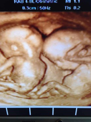 Seguimiento ecográfico con 4D gestacion gemelar